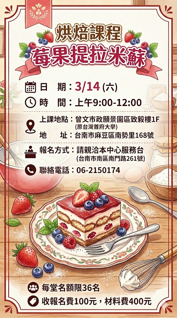 烘焙體驗課程-莓果提拉米蘇